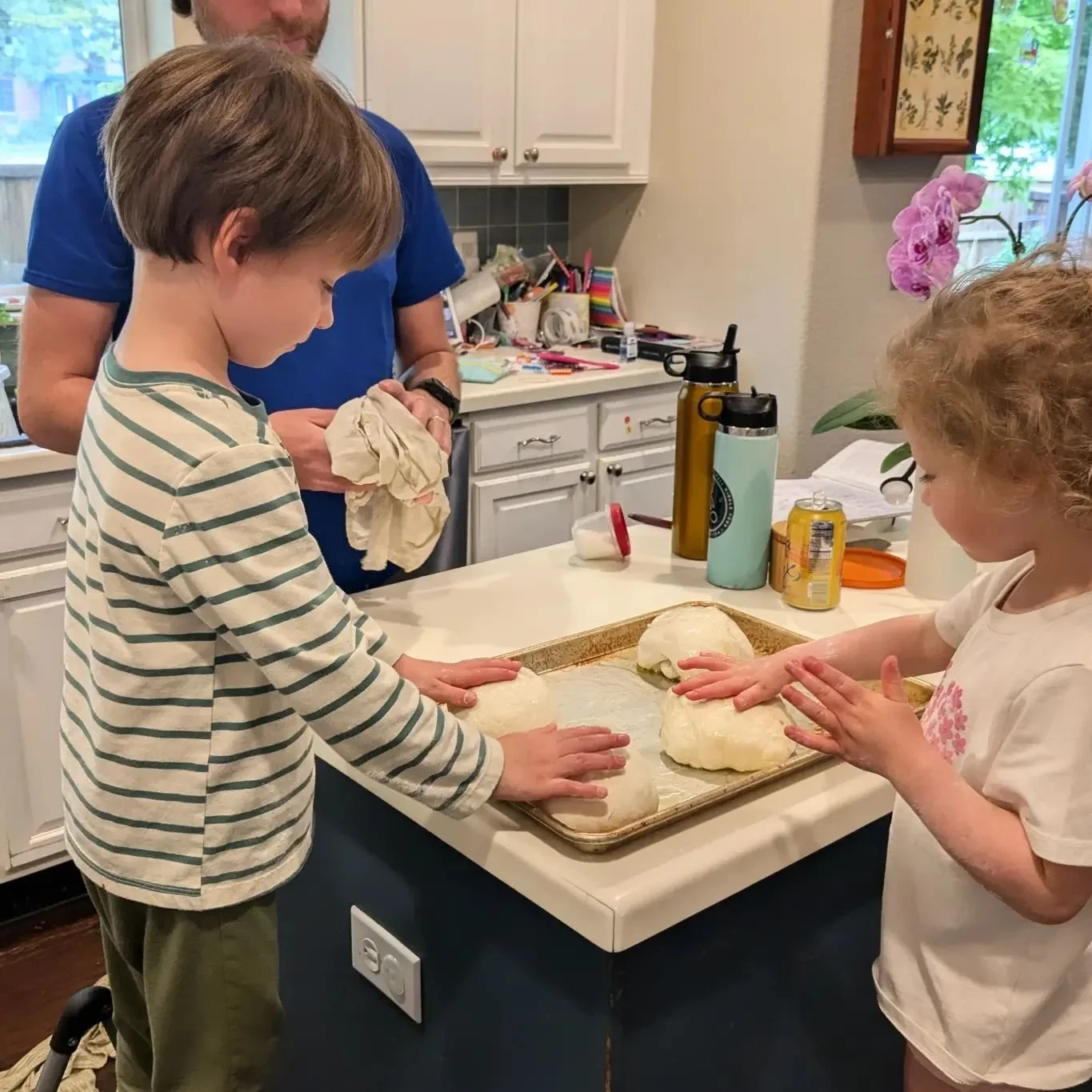 View fullsize Parenthood (life) is having to let go of control over and over and over- while simultaneously wanting nothing more than to control it all 😅 ...Well tonight was a big win for all of us! I let everyone shape a pizza dough, and I have absolutely no dou