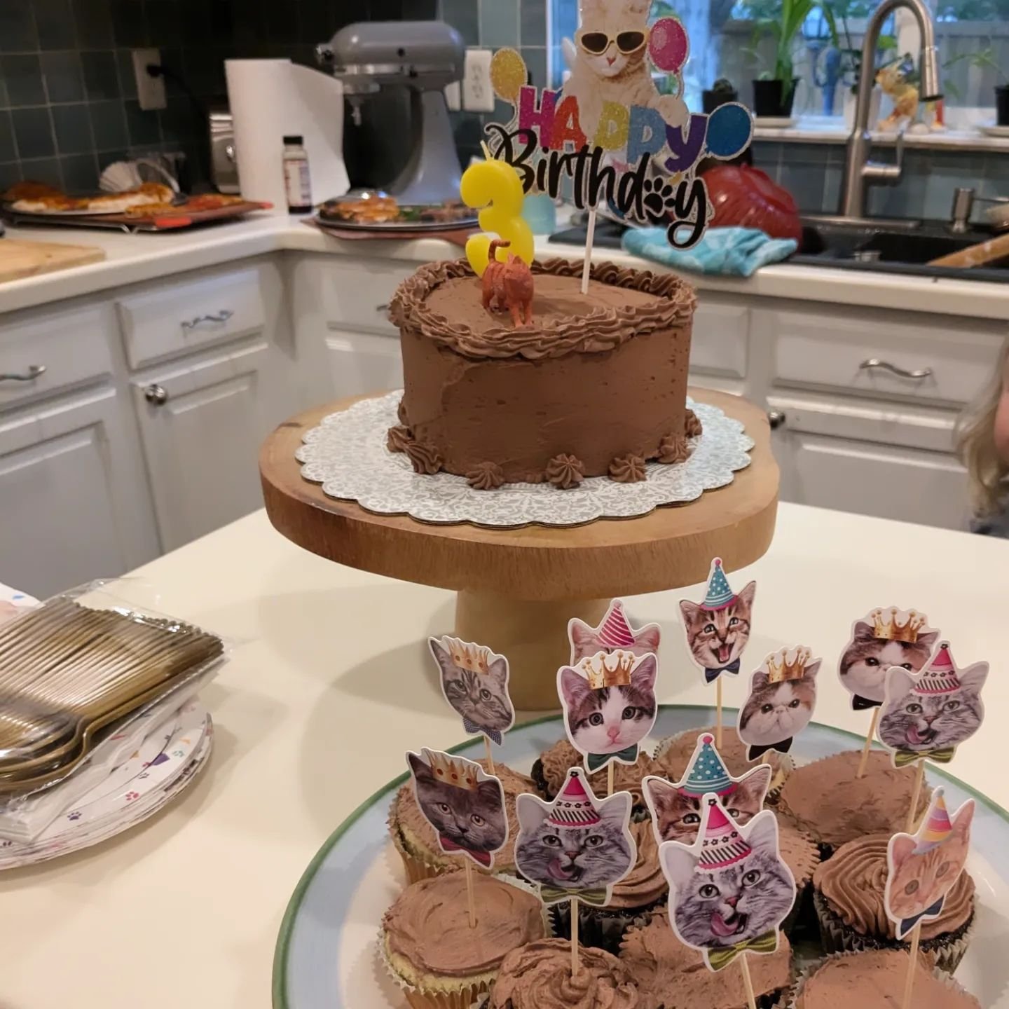 View fullsize Birthday party in food 😋 It's been a whirlwind of a summer, ending with a weekend full of celebrating Kinley's third birthday and her first year of school (started today!). We gathered loved ones for pizza, salad, cat cakes, cupcakes, and cake cake!
